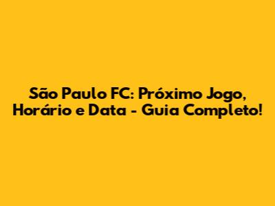 São Paulo FC: Próximo Jogo, Horário E Data - Guia Completo!