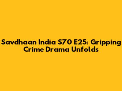 Savdhaan India S70 E25: Gripping Crime Drama Unfolds
