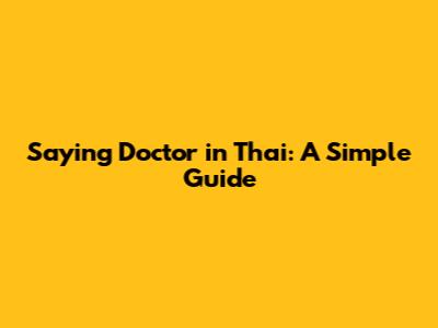 Saying Doctor In Thai: A Simple Guide