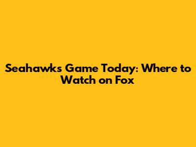 Seahawks Game Today: Where To Watch On Fox