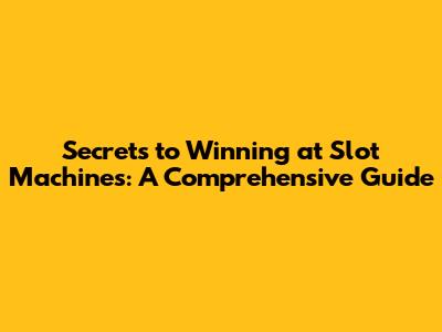 Secrets To Winning At Slot Machines