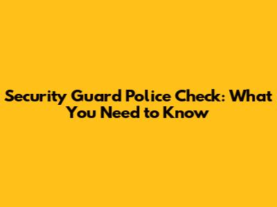 Security Guard Police Check: What You Need To Know