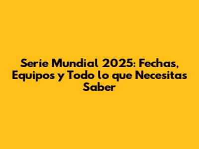 Serie Mundial 2025: Fechas, Equipos Y Todo Lo Que Debes Saber