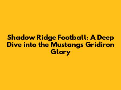 Shadow Ridge Football: A Deep Dive Into The Mustangs' Gridiron Glory