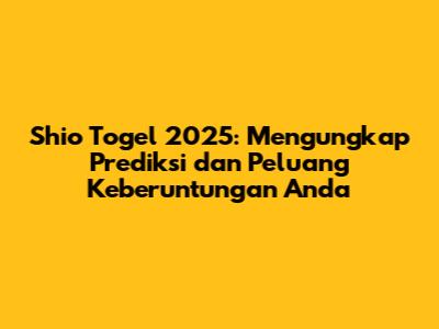 Shio togel 2025 menawarkan peluang menarik bagi para pemain togel. Dengan memahami konsep shio, memanfaatkan tabel shio, dan menggunakan prediksi yang tepat, Anda bisa meningkatkan peluang Anda untuk memenangkan togel. Jangan lupa untuk mencari angka shio togel 2025 yang paling cocok dengan Anda, dan gunakan strategi bermain yang tepat.