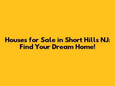 Short Hills NJ Houses For Sale: Find Your Dream Home!