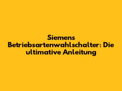 Siemens Betriebsartenwahlschalter: Die Ultimative Anleitung