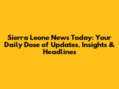 Sierra Leone News Today: Updates, Insights & Headlines