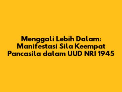 Sila keempat Pancasila, yaitu "Kerakyatan yang Dipimpin oleh Hikmat Kebijaksanaan dalam Permusyawaratan/Perwakilan", merupakan landasan penting bagi sistem demokrasi di Indonesia. Sila ini termanifestasi dalam UUD NRI 1945 melalui pasal-pasal yang mengatur tentang kedaulatan rakyat, MPR, DPR, pemilu, dan kebebasan menyampaikan pendapat. Implementasi sila keempat dalam kehidupan sehari-hari juga sangat penting untuk menciptakan masyarakat yang demokratis dan berkeadilan. Meskipun ada tantangan dalam mengimplementasikan sila keempat, dengan upaya bersama dari seluruh elemen bangsa, tantangan-tantangan tersebut dapat diatasi dan Indonesia dapat menjadi negara demokrasi yang maju dan sejahtera.