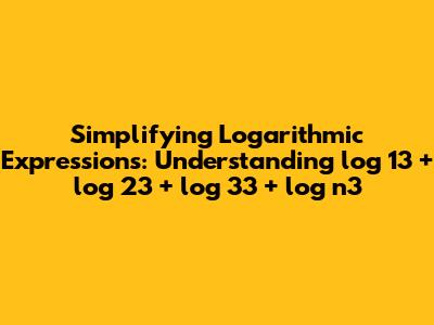 In conclusion, simplifying logarithmic expressions like log 13 + log 23 + log 33 + log n3 involves understanding the fundamental properties of logarithms, such as the product rule and the power rule. By applying these rules correctly, we can combine and simplify logarithmic terms to arrive at a more manageable expression. Remember to pay attention to the base of the logarithm and avoid common mistakes, such as incorrectly applying the product rule or forgetting the power rule.