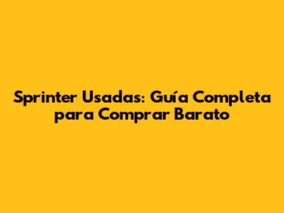 Sprinter Usadas: Guía Completa Para Comprar Barato