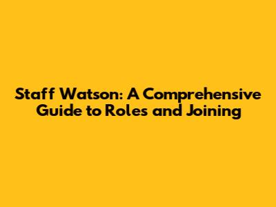 Staff Watson: Guide, Roles, And How To Join