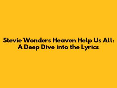 Hey everyone! Today, we're going to dive deep into a classic: Stevie Wonder's "Heaven Help Us All". This song isn't just a tune; it's a powerful message wrapped in soulful melodies. We'll break down the lyrics, explore their meaning, and see why this song still resonates with so many of us, years after its release. So, grab your headphones, get comfy, and let's get started!