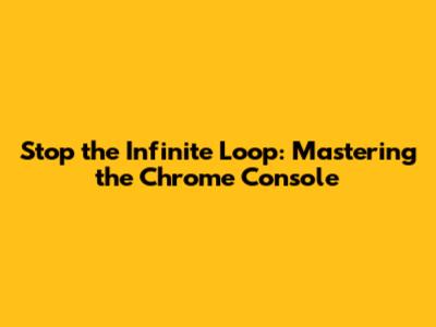 Stop The Infinite Loop: Mastering The Chrome Console