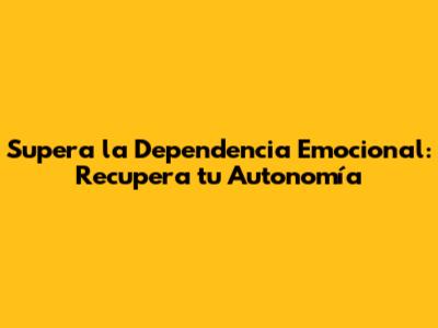 Supera La Dependencia Emocional: Recupera Tu Autonomía