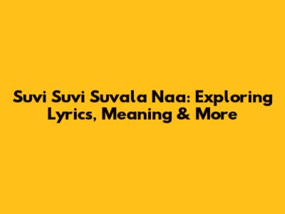 Unpacking the Meaning: What "Suvi Suvi Suvala Naa" Is All About