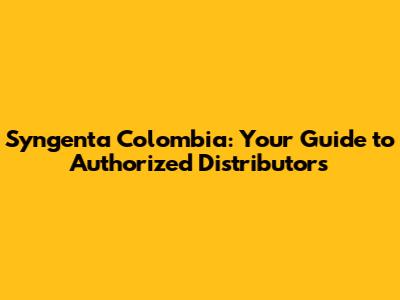 Syngenta Colombia: Your Guide To Authorized Distributors