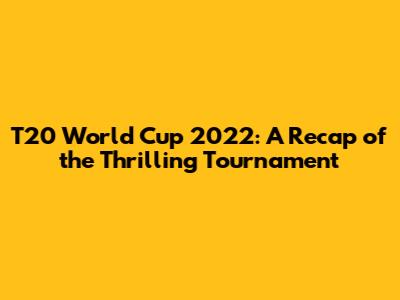 T20 World Cup 2022: Final Standings & Key Moments