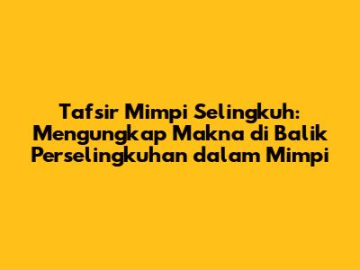 Sekarang, mari kita bahas tafsir mimpi selingkuh dari berbagai perspektif, termasuk 2D, 3D, dan 4D. Perlu diingat bahwa tafsir mimpi hanyalah interpretasi, dan makna mimpi dapat bervariasi tergantung pada pengalaman pribadi dan keyakinan masing-masing.