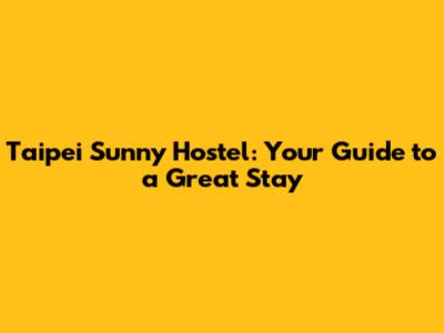Taipei Sunny Hostel: Your Guide To A Great Stay