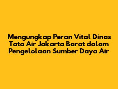 Mengungkap Peran Vital Dinas Tata Air Jakarta Barat dalam Pengelolaan Sumber Daya Air