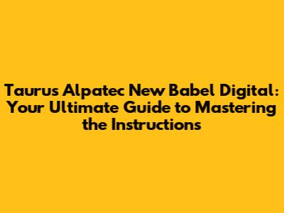 Taurus Alpatec New Babel Digital: Your Guide