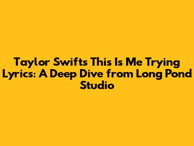Hey guys, let's talk about Taylor Swift! If you're anything like me, you've probably been completely mesmerized by her music, and specifically, the raw emotion packed into her album folklore. Today, we're diving deep into one of the standout tracks, "This Is Me Trying", and exploring its lyrics, especially as we revisit them through the lens of the intimate Long Pond Studio Sessions. This song, man, it's a whole mood, right? It’s the kind of track that hits you right in the feels, making you reflect on your own struggles and the sheer effort we put into navigating life, love, and our own messy selves. It’s about that quiet, often unseen, battle we fight daily to just keep going, to show up, and to try, even when it feels like we’re falling short. The Long Pond Studio Sessions version adds another layer, stripping back the production and laying bare the vulnerability that makes this song resonate so profoundly. It’s like sitting in the room with Taylor, sharing a quiet moment of understanding, and that’s what makes dissecting these lyrics even more special.