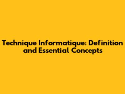 Technique Informatique: Definition And Essential Concepts