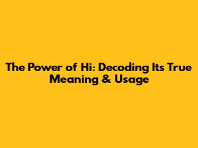 The Power Of 'Hi': Decoding Its True Meaning & Usage