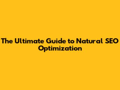 The Ultimate Guide To Natural SEO Optimization