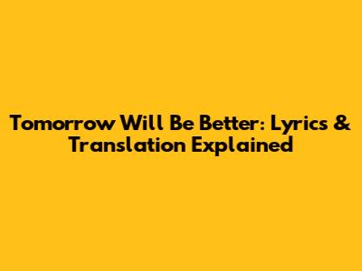 Tomorrow Will Be Better: Lyrics & Translation Explained