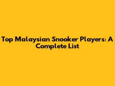 Top Malaysian Snooker Players: A Complete List