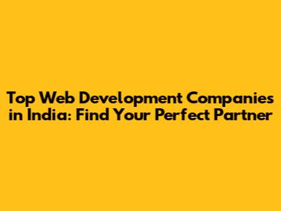 Top Web Development Companies In India: Find Your Perfect Partner