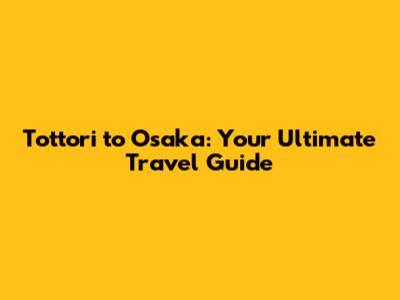Tottori To Osaka: Your Ultimate Travel Guide