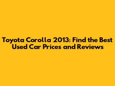 Toyota Corolla 2013: Used Car Prices & Review