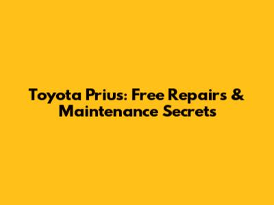 Toyota Prius: Free Repairs & Maintenance Secrets