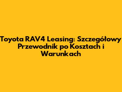 Toyota RAV4 Leasing: Koszt, Warunki I Poradnik