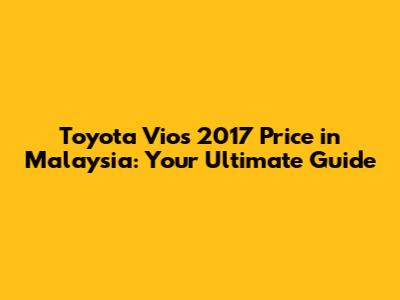 Toyota Vios 2017 Price In Malaysia: A Comprehensive Guide