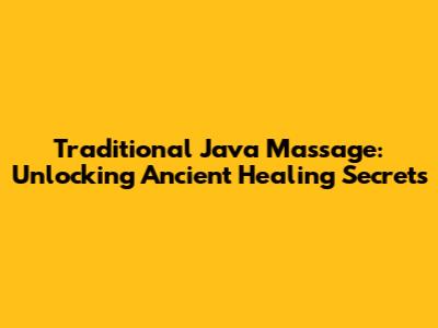 Hey everyone! Today, we're diving deep into the incredible world of traditional Java massage, a practice steeped in centuries of history and wisdom from the island of Java, Indonesia. If you're looking for a way to truly unwind, rejuvenate your body, and connect with ancient healing techniques, then you've come to the right place, guys. This isn't just your average spa treatment; it's an experience that engages your senses, heals your soul, and leaves you feeling absolutely brand new. We're going to explore what makes this massage so special, its origins, the techniques involved, and the myriad of benefits it offers. So, grab a cup of tea, get comfy, and let's journey into the heart of Javanese wellness.
