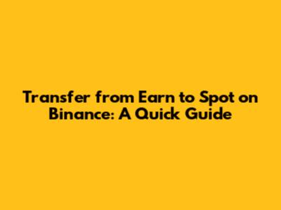 Transfer From Earn To Spot On Binance: A Quick Guide