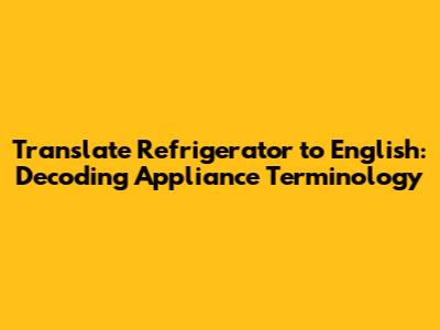 Translate Refrigerator To English: Your Ultimate Guide