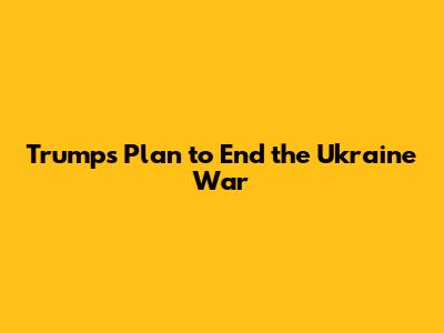 Trump's Plan To End The Ukraine War