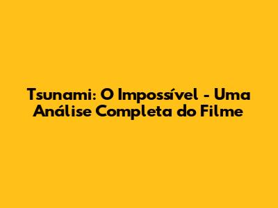 Tsunami: O Impossível - Análise Completa Do Filme!