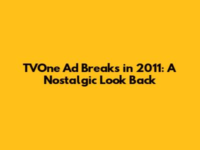 TVOne Ad Breaks In 2011: A Nostalgic Look Back