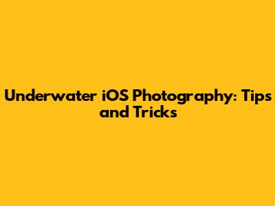 Underwater IOS Photography: Tips And Tricks