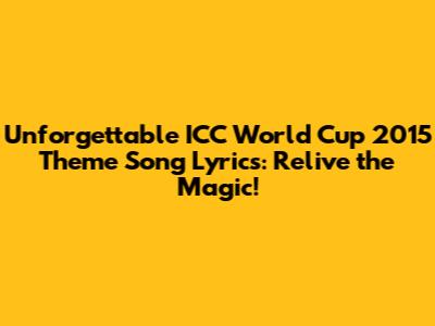 Hey cricket fanatics! Ever find yourself humming a tune and instantly transported back to a specific moment? For many of us, that feeling is intrinsically linked to the 2015 ICC World Cup and, of course, its unforgettable theme song. This epic tournament, held in Australia and New Zealand, wasn't just about bat-and-ball action; it was a cultural phenomenon, fueled by the energy of the fans and the heart-pumping anthems that echoed through stadiums and homes alike. Today, we're diving deep into the lyrics of this iconic song, dissecting the words, and reliving the magic that defined a generation of cricket lovers. So, buckle up, guys, because we're about to embark on a nostalgic journey, exploring the ICC World Cup 2015 theme song lyrics and the memories they evoke.
