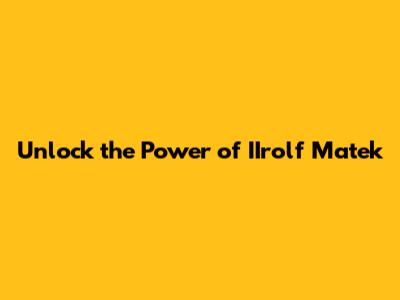 Unlock The Power Of IIrolf Matek
