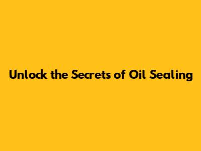 Unlock The Secrets Of Oil Sealing