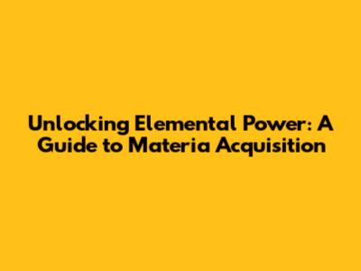 Unlocking Elemental Power: A Guide To Materia Acquisition