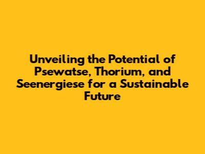 Unlocking Energy: Psewatse, Thorium, And Sustainable Power
